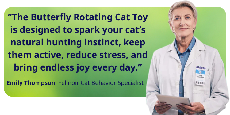 The toy uses a flexible wire and a butterfly attachment that spins in a 360° motion, mimicking real prey to stimulate your cat’s hunting instinct.
