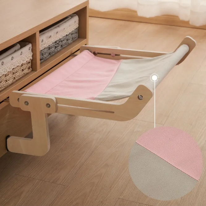 The cat hammock can be attached with its hangar clip in gaps such as window sills, drawers, chair backs, and bedsides. When you are not using the cat hammock, it can be easily removed without disassembly